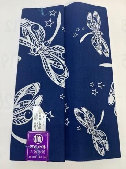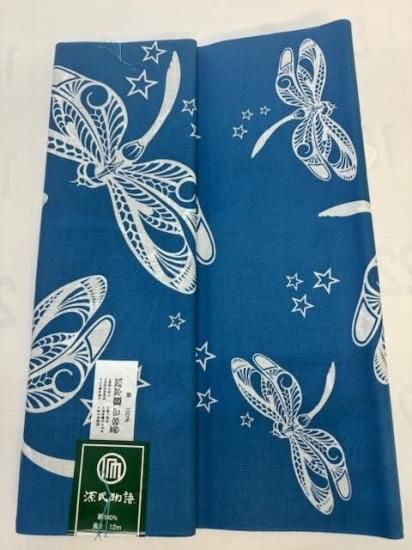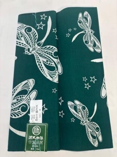 反物・碧山(青地トンボ柄)濃紺・モスグリーン・薄青
